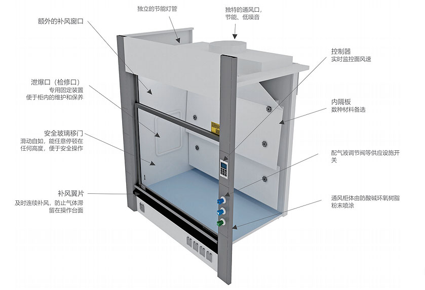 環境”係統中人認證與檢測、機、環境三大要素之間的關係,為解決該係統中人的效能、健康問題提供科學的理論與方法。人體工程學的應用為通風櫃設計帯來了人性化因素,通風櫃設計中的尺寸、構造都結